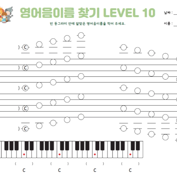 레벨별로 오선에서 조금씩 더해지는 음들을