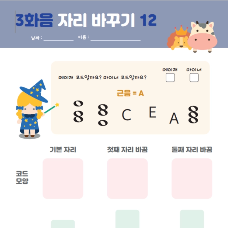3화음의 자리바꿈을 배우는 워크지에요.