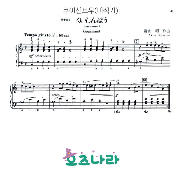 1. 첫 네마디의 화음과 스타카토 연주가 시작부터 귀에 상큼하고 임팩트있게 들려요. 2.마지막 네마디의 셋잇단음표의 연주가 반전의 매력~ 한국말로 번역된 제목이 재미있는 연주를 만들어 낼 상상의 언어에요. 어린아이의 마음을 닮은 순수하고 맑은 감성의 피아노 곡집, 일본 내 애창되는 동요 작곡으로 국민적 사랑을 받는 동요의 아버지 Akira Yuyama의 「お菓子の世界 (과자세상) Part.3」오즈나라 시민분들께 특별히 드리는 선물이에요. 연주연상은 아래 상세정보란에 올려놓을께요. 초등학교 중학년, 성인분들 모두 좋아요~ 접하기 쉽지않은 숨겨진 보물 곡 입니다.
