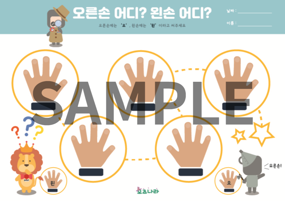 귀여운 또까가 오른손&왼손을 익힐 수 있게 도와주고 있네요.