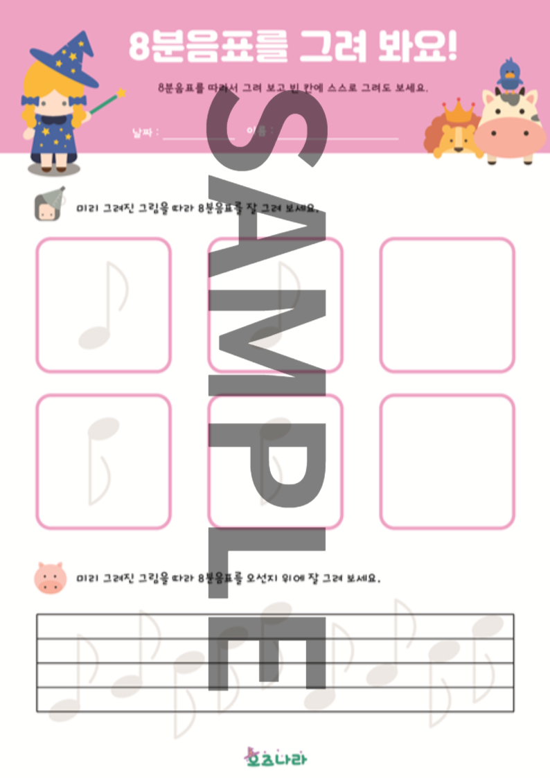 다양한 방법으로 8분음표를 그려보면서 음표의 특징을 배워봐요.