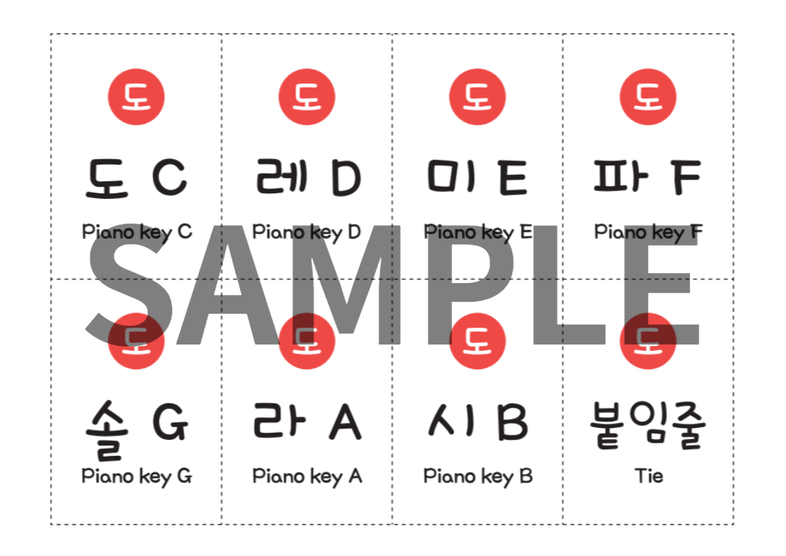 준비물 : 게임판, '도,레,미' 게임진행카드, 또까빙고카드, 필기도구