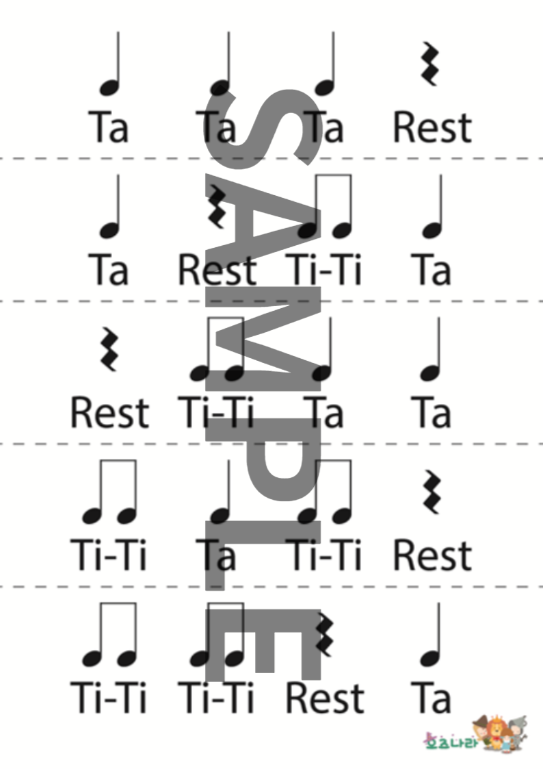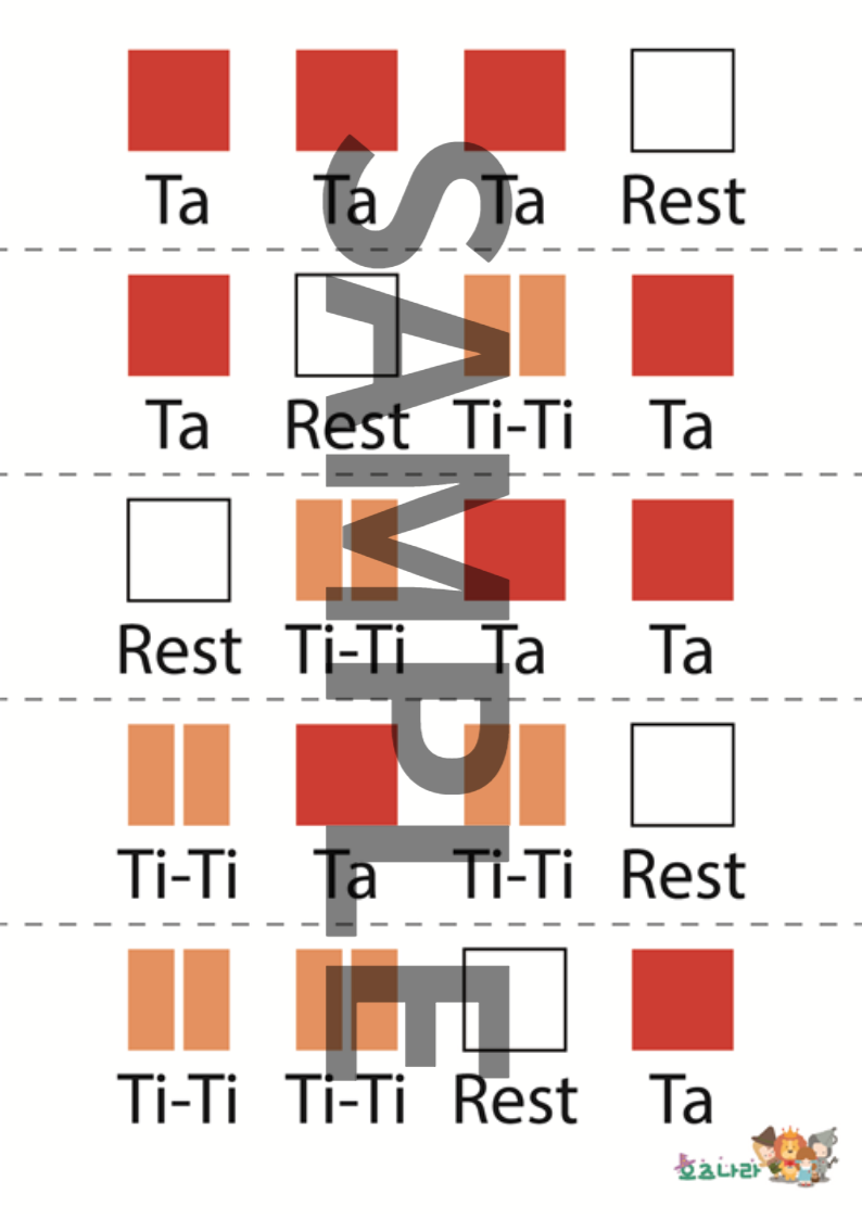 음표 악보에서 같은 리듬을 배우는 과정은 기초단계의 어린아이들에게
