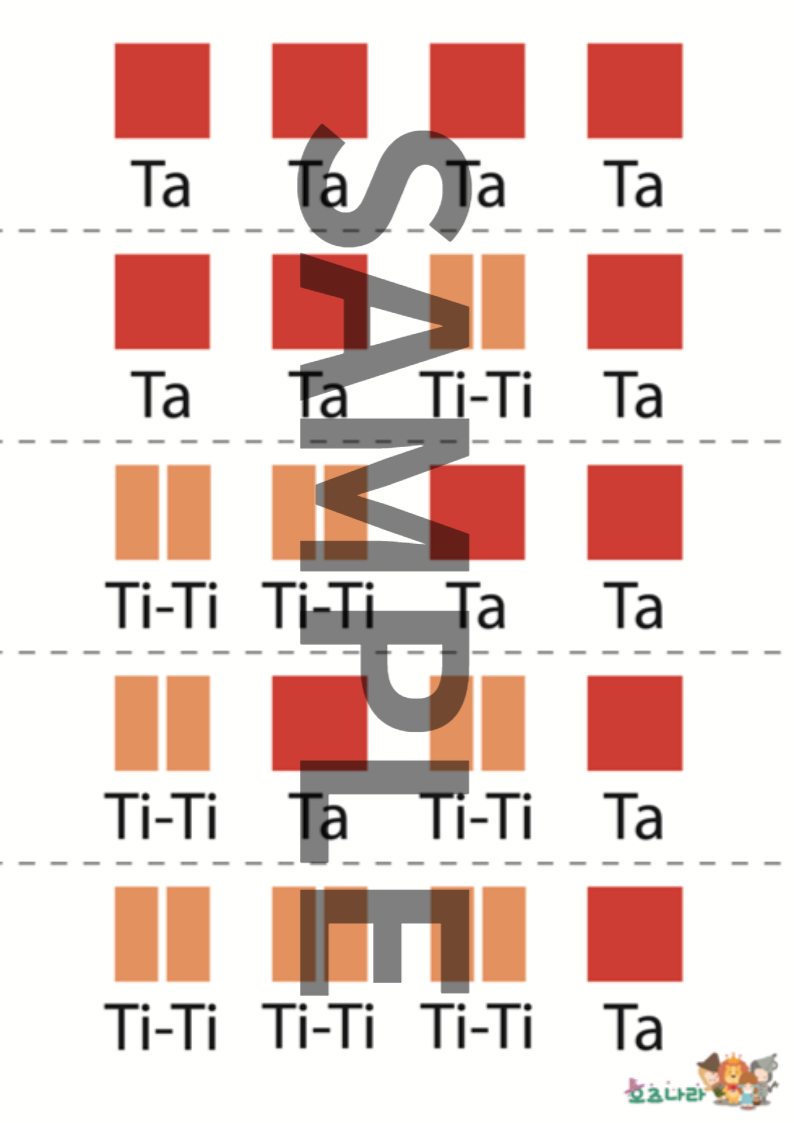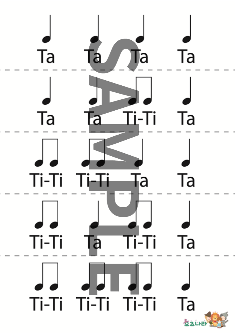 음표 악보에서 같은 리듬을 배우는 과정은 기초단계의 어린아이들에게