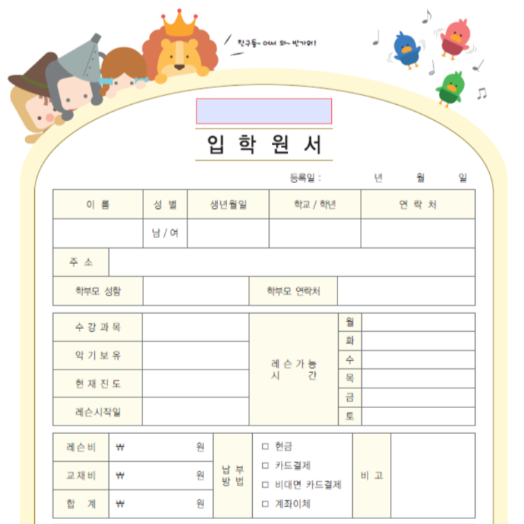 #학원자료 #입학원서 #학원운영 #자료 #학원차량 #원서 #자료