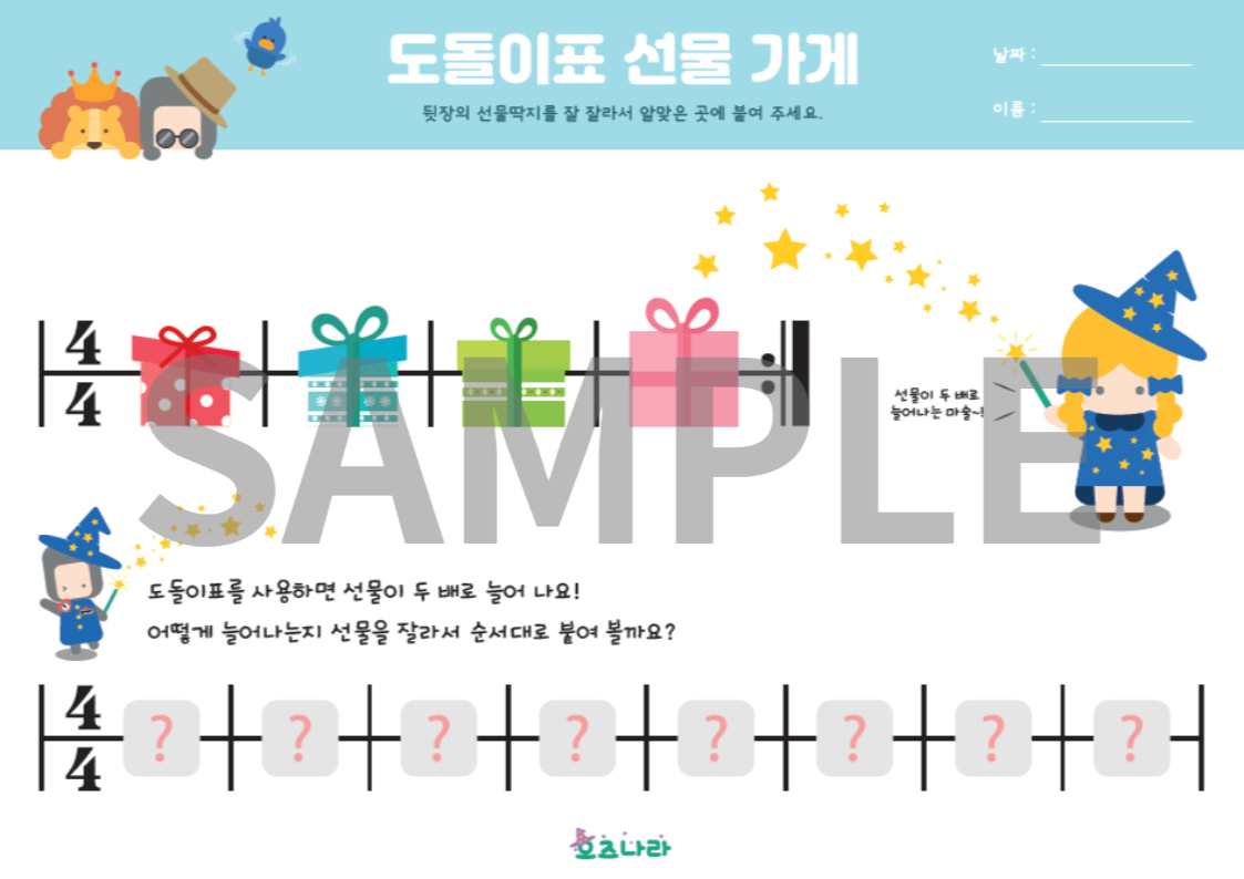총4장의 (기초)도돌이표 이론지를 코팅.찍찍이를 활용 하셔서