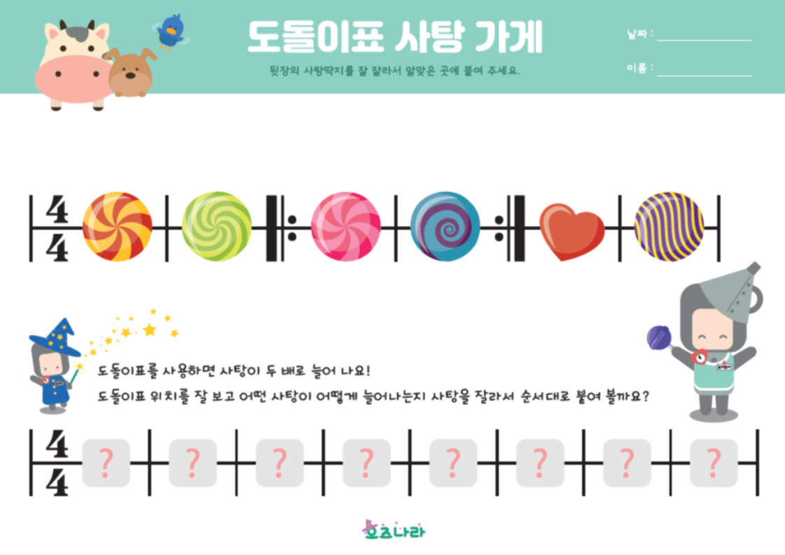 총4장의 (기초)도돌이표 이론지를 코팅.찍찍이를 활용 하셔서