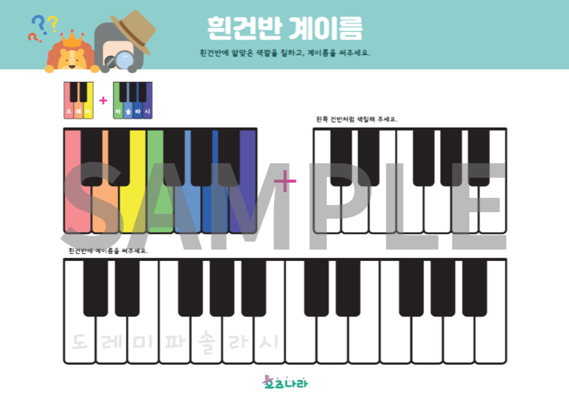 색칠도하고, 따라 써보면서 흰건반의 계이름을 배워요.