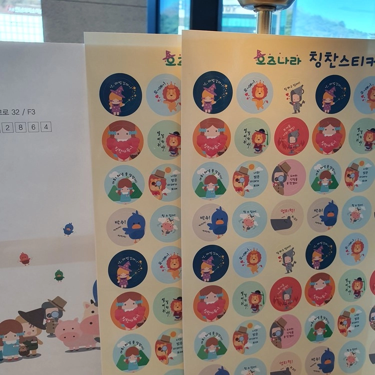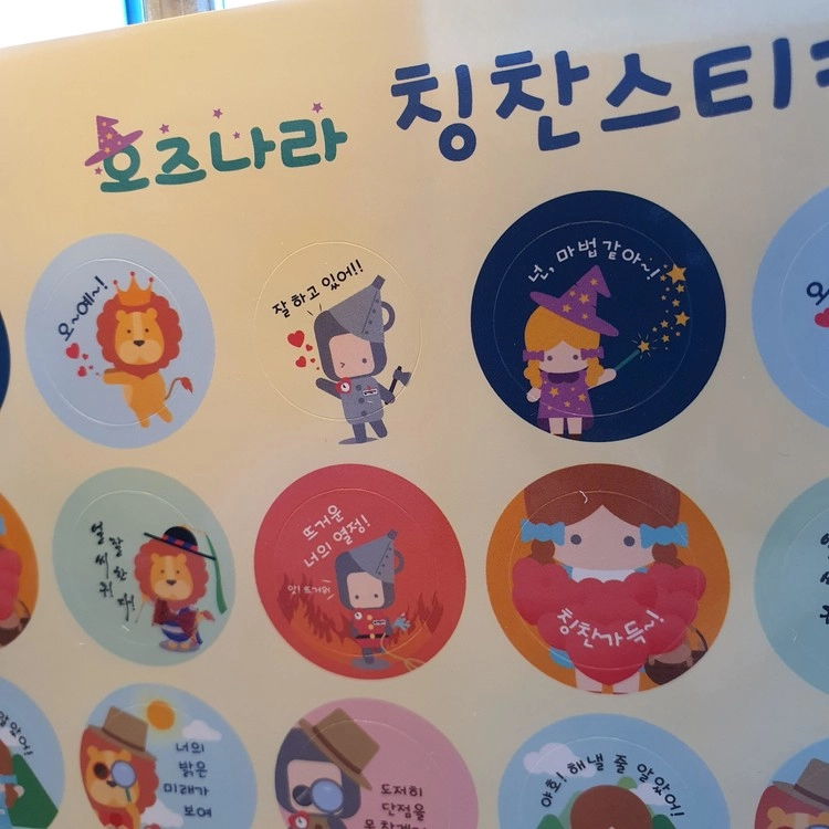 오즈나라의 캐릭터 들이 다 등장했어요!! 예쁘고 귀여운 캐릭터들과 칭찬과 격려의 맘이 듬뿍담긴 말들로 스티커 하나하나 정성껏 디자인 했어요. 칭찬스티커 판 4종은 사이트에서 다운받아 쓰세요. 스티커 1판에 스티커 42개 , 10장 묶음으로 판매