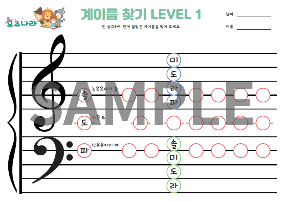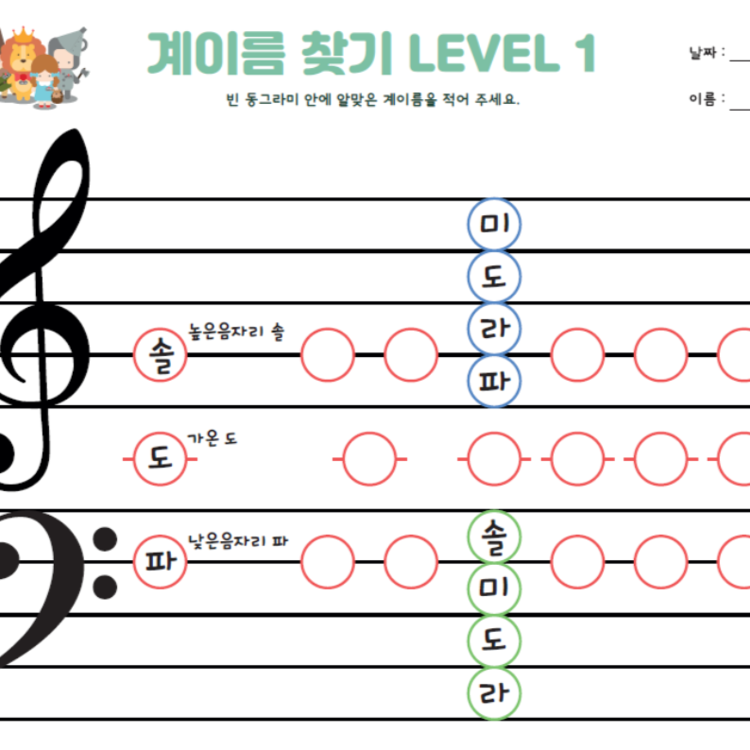 레벨별로 오선에서 조금씩 더해지는 음들을