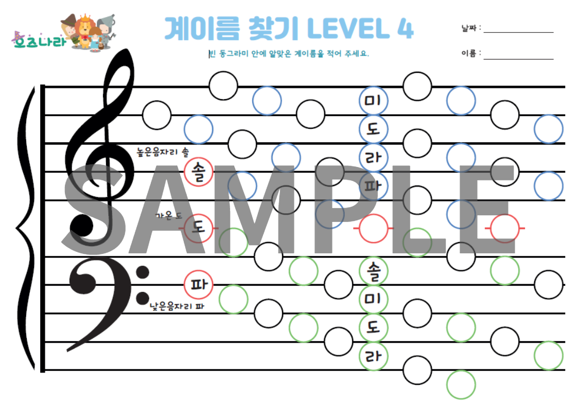 레벨별로 오선에서 조금씩 더해지는 음들을