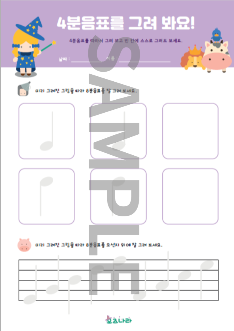 음표를 그려보고 이름을 배워요.