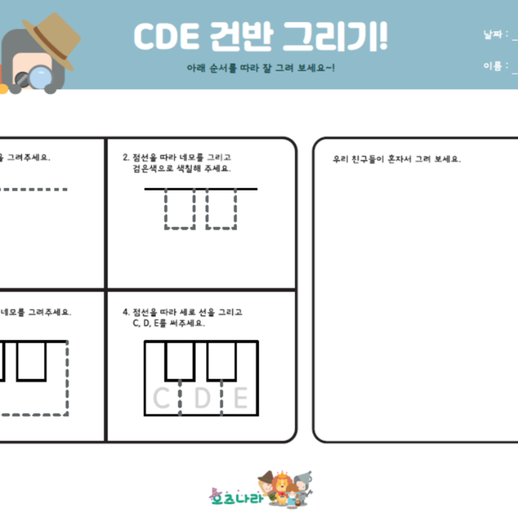 #흰건반 #흰건반그리기 #CDE영어음이름 #음이름건반그리기