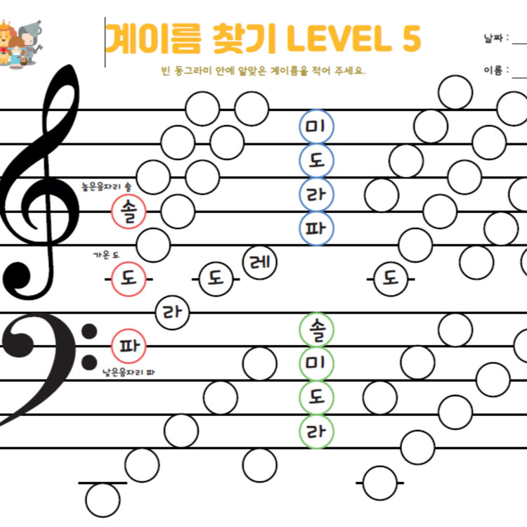 레벨별로 오선에서 조금씩 더해지는 음들을