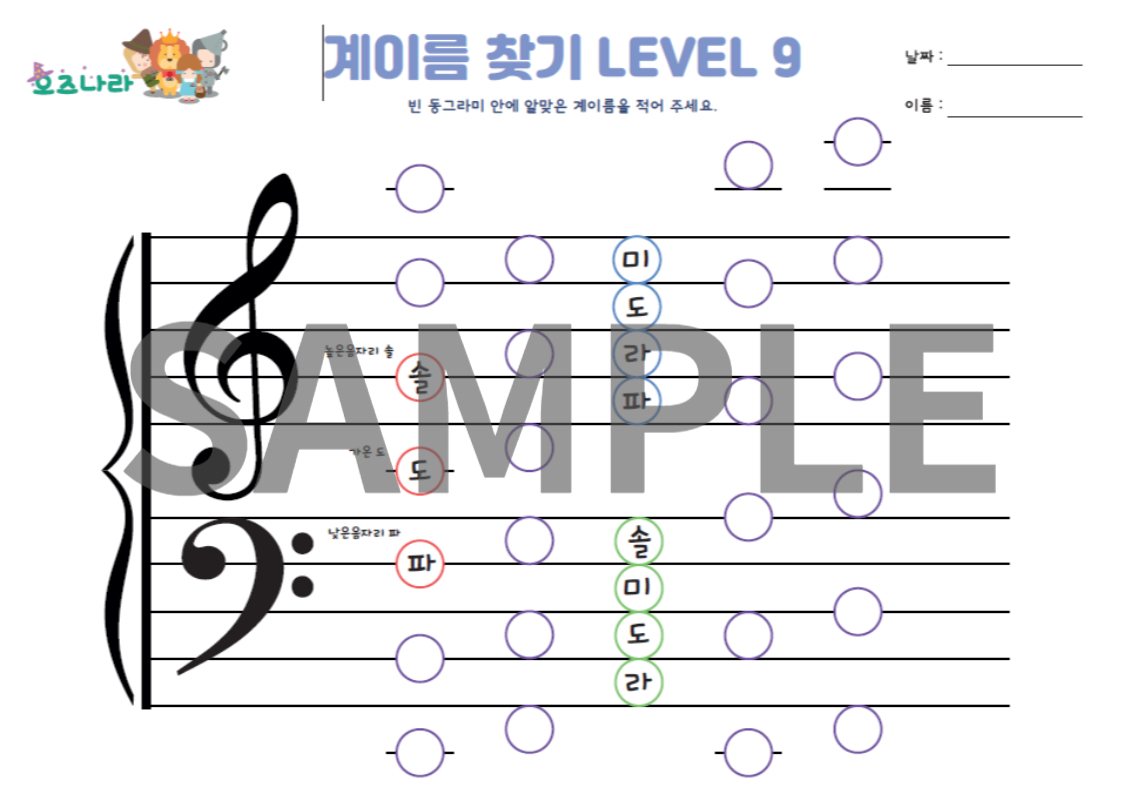 레벨별로 오선에서 조금씩 더해지는 음들을