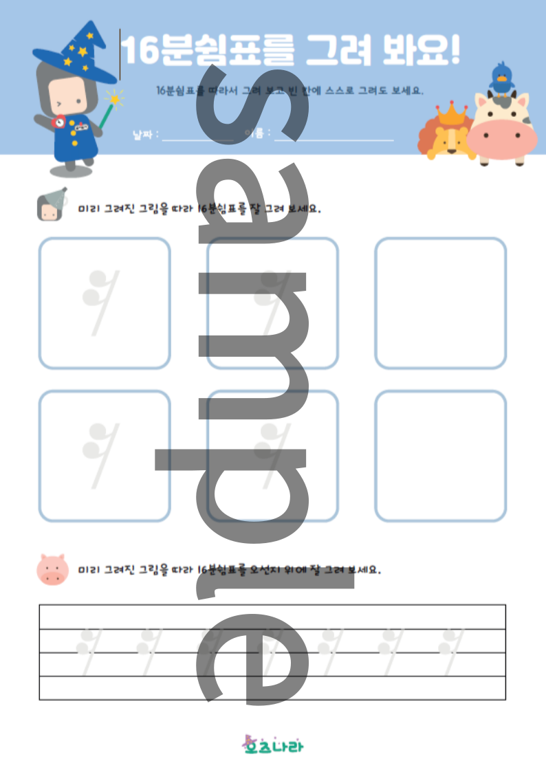 줄과 칸에 그려보면서 음표와쉼표를