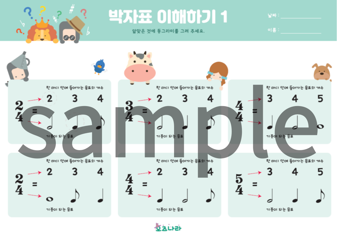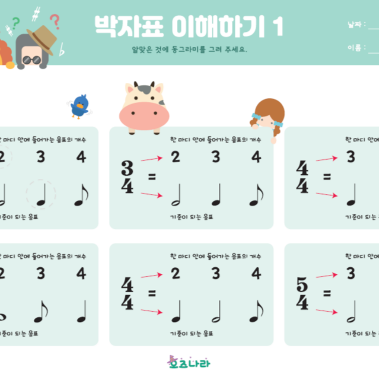 가장 기본이 되는 4분음표를 기준으로 하는 박자표!