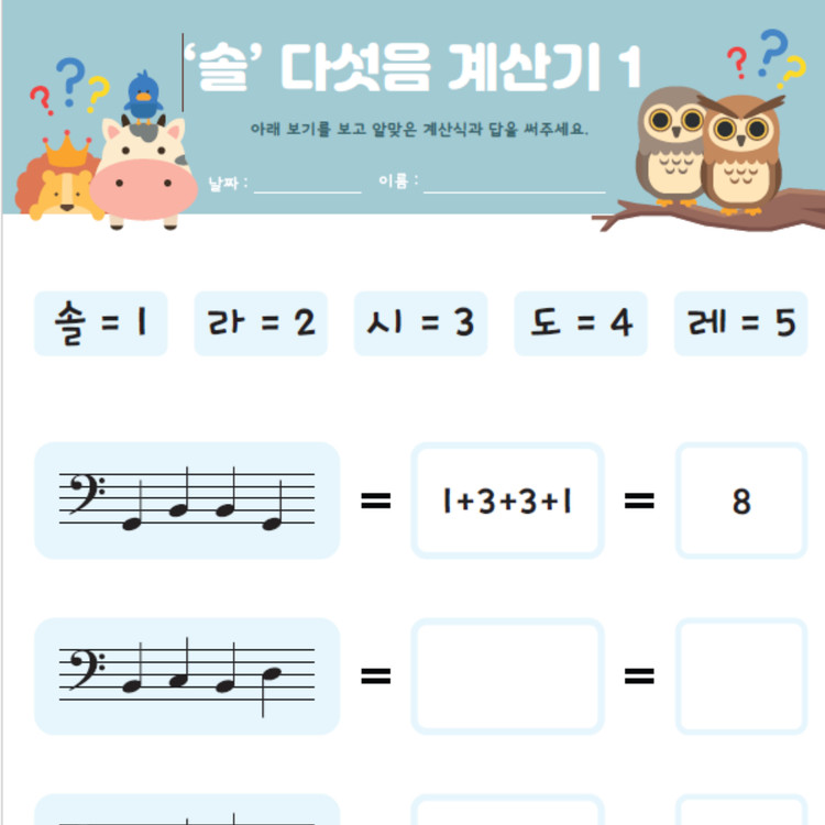 오선 위에서 다양한 음을 찾고 음마다 고유의 숫자를 정하여 더하는 수학적 활동은 음악과 수학을 융합한 교육적 접근으로 여러가 지 효과를 기대할 수 있어요. (아래상세페이지참고)
